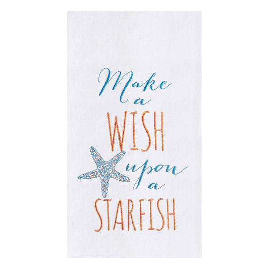 "Make a Wish upon a Starfish" - Flour Sack Embroidered Kitchen Towel