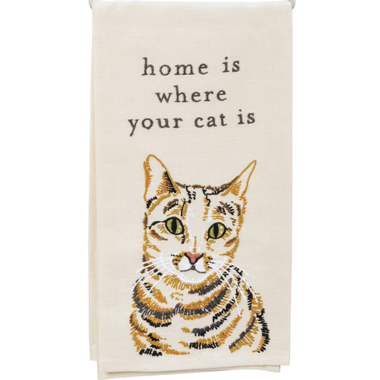 Home Is Where Your Cat Is - Cat Lover Embroidered Kitchen Towel