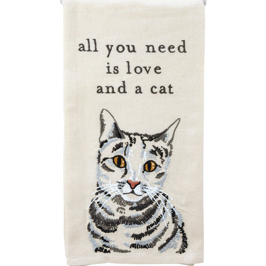 "All You Need Is Love And A Cat" - Cat themed embroidered Kitchen towel -