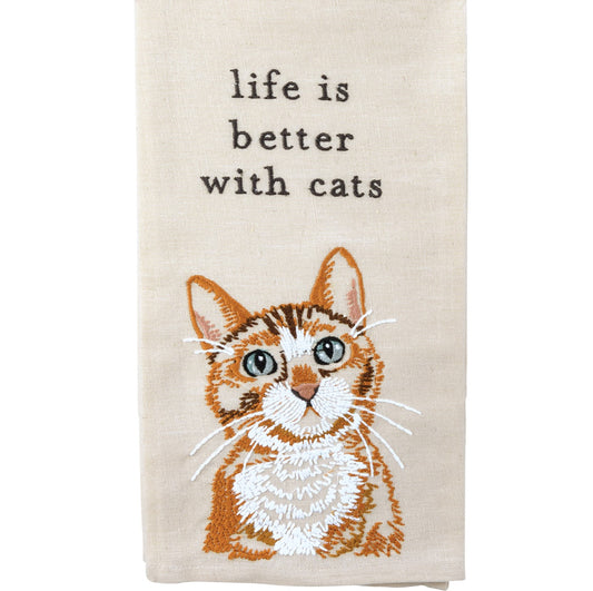 "Life Is Better With Cats" - Cat themed Embroidered Kitchen Towel